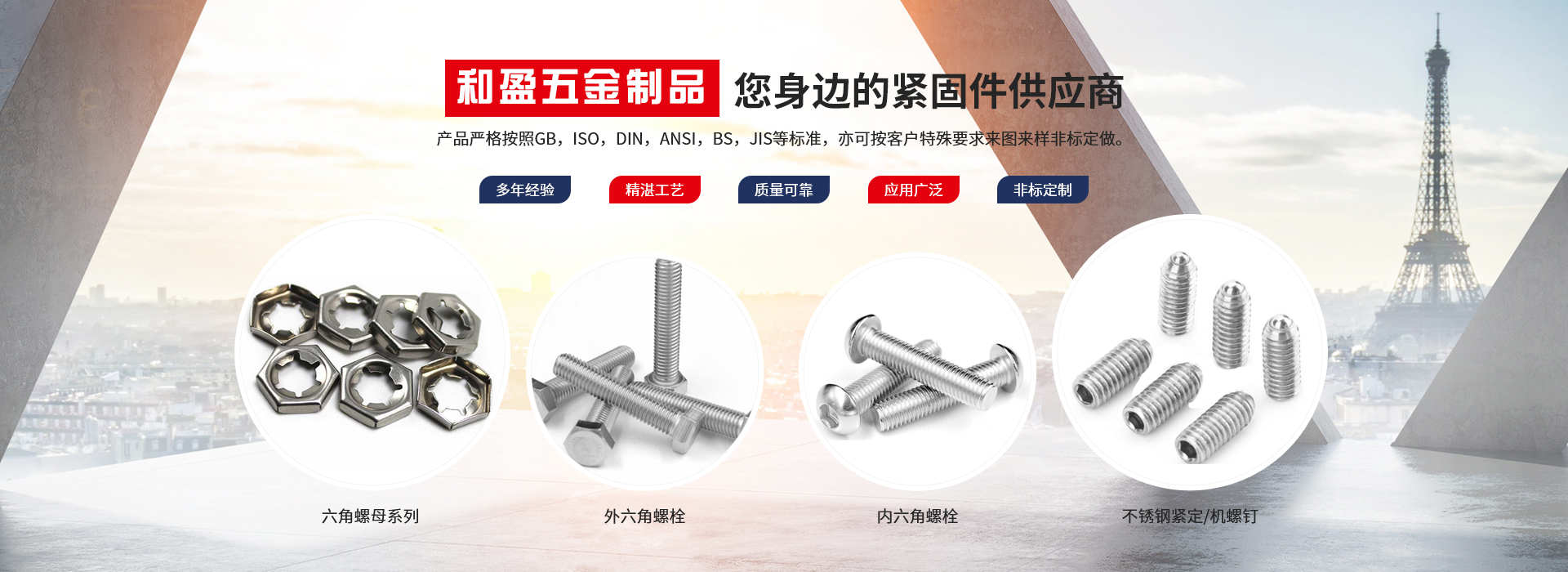 興化市和盈五金制品有限公司創(chuàng)建于2010年,坐落在全國不銹鋼名鎮(zhèn)———江蘇戴南。本公司集當?shù)夭讳P鋼優(yōu)勢和全國銷售網(wǎng)點,以不銹鋼緊固件產(chǎn)品為主體的企業(yè)。我們將始終如一的堅持以客戶為中心,堅持以品質(zhì)取勝的發(fā)展戰(zhàn)略,依靠科學技術(shù)不斷創(chuàng)新。秉承這種精神,我們一起和諧合作,共贏未來。產(chǎn)品嚴格按照GB,ISO,DIN,ANSI,BS,JIS等標準,亦可按客戶特殊要求來圖來樣非標定做。產(chǎn)品廣泛應(yīng)用......